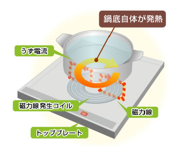 IHは火を使いません。磁気コイルから発生している磁力を熱に変えて発熱しています。